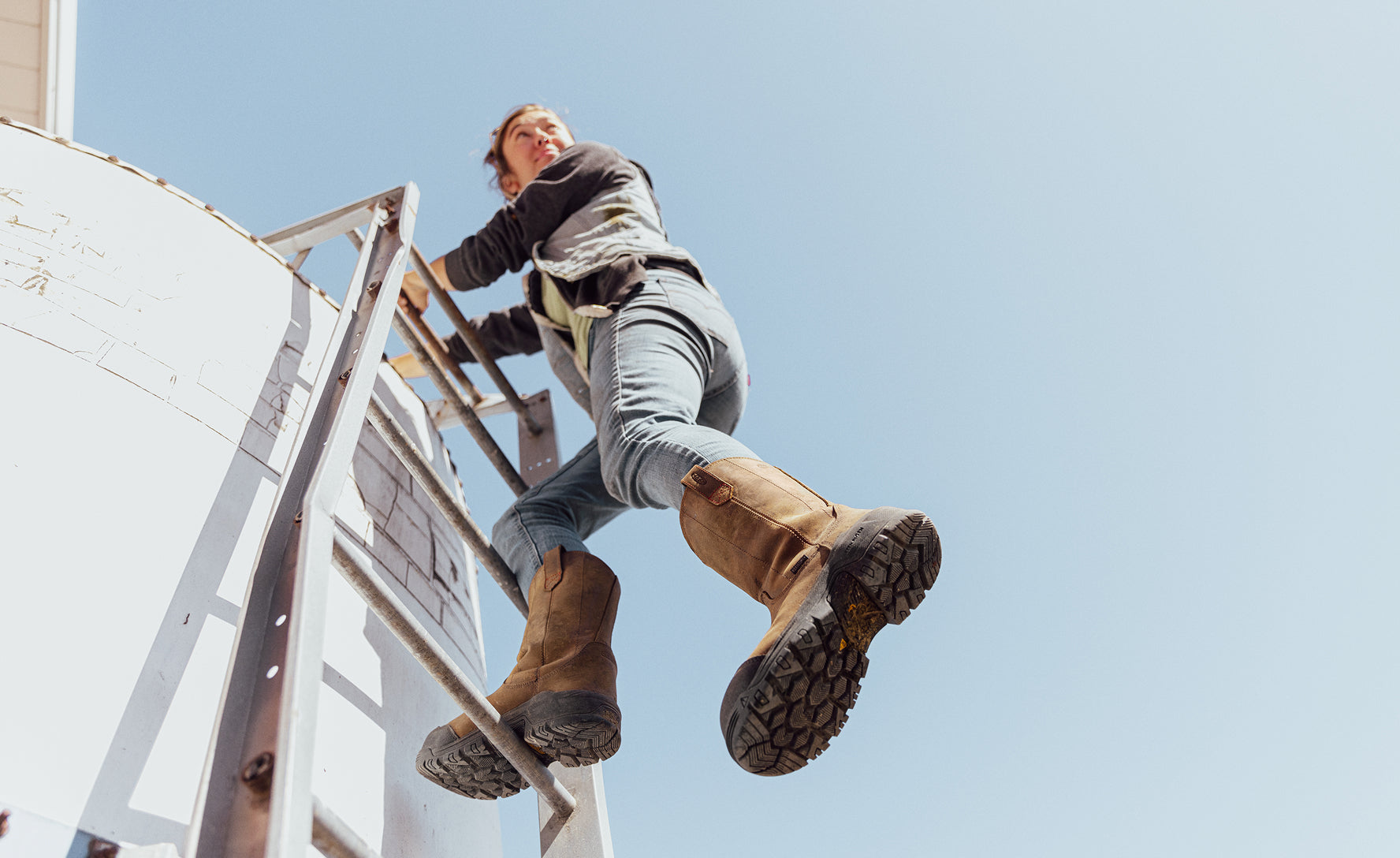 Protects like a work boot, fits like a sneaker. This waterproof women’s pull-on style features a tough leather upper and energy-returning cushioning.
